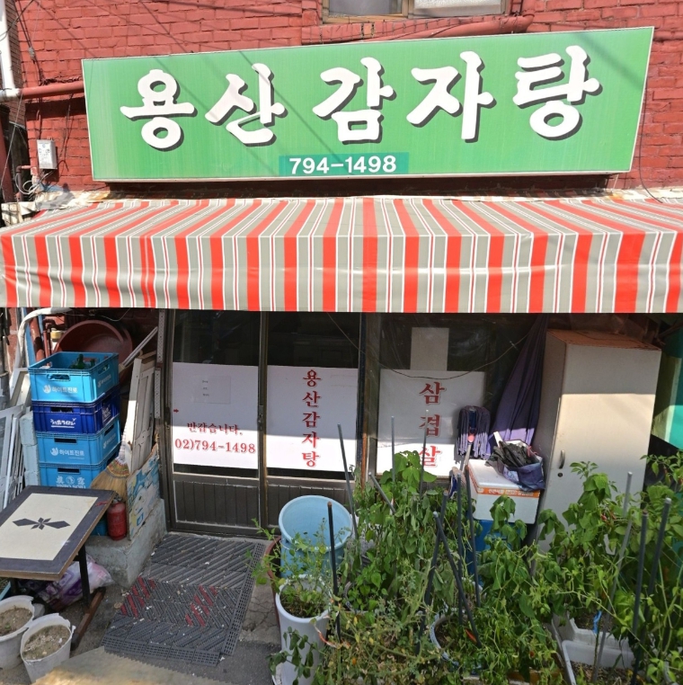 '용산감자탕'은 용산역과 신용산역 사이, 화려한 빌딩 숲 뒤편 골목에 조용히 자리 잡고 있습니다.