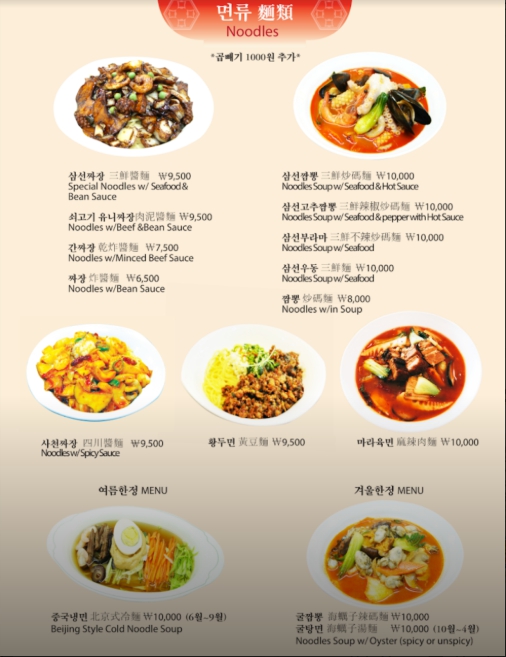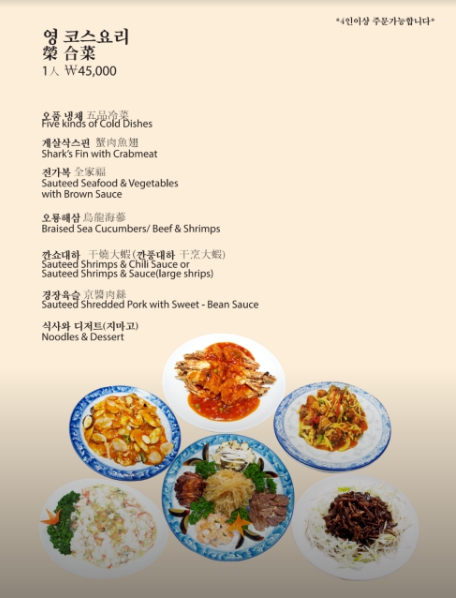 중화루 메뉴판