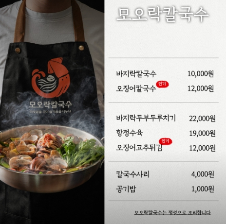 3. 겨울 한정 별미 '굴 칼국수' 오늘 방송의 주인공! 제철을 맞아 통통하게 살이 오른 신선한 굴을 아낌없이 넣어, 시원하고 개운한 맛의 정점을 찍었습니다. (※ 평소에는 얼큰한 오징어 칼국수와 담백한 바지락 칼국수가 메인입니다.)