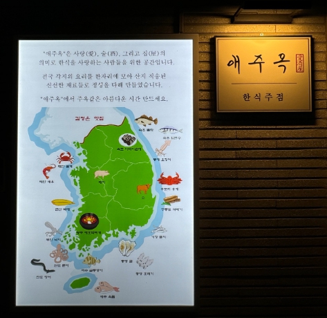 이곳의 이름 '애주옥(愛酒屋)'은 사랑(愛), 술(酒), 그리고 집(屋)을 의미하며, 한식을 사랑하는 사람들을 위한 공간이라는 뜻을 담고 있습니다. 한남동에서 웨이팅이 생길 정도로 핫한 곳이라니 기대되시죠?