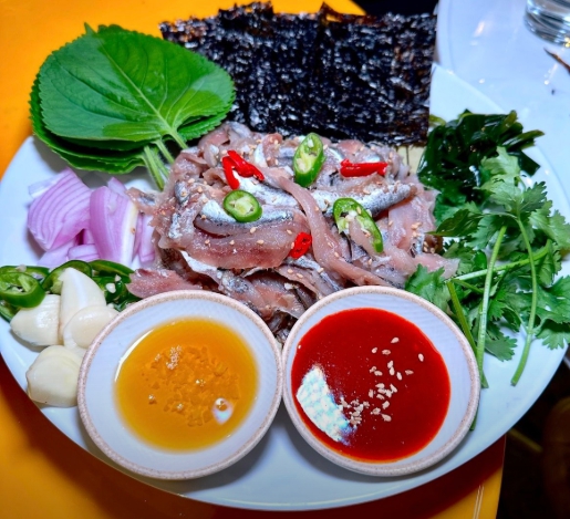 - 멸치회: 신선해야만 먹을 수 있는 별미!