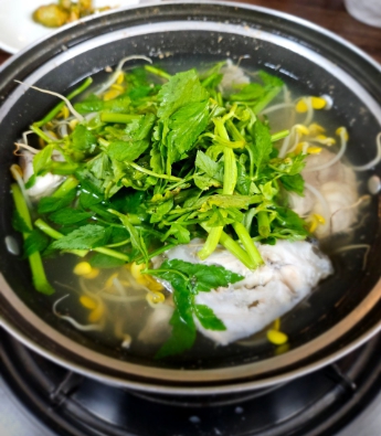 - 콩나물과 미나리가 듬뿍 들어가 국물이 끝내줍니다. 숙취 해소와 해독 작용에 탁월해 애주가들의 사랑을 듬뿍 받는 메뉴!
