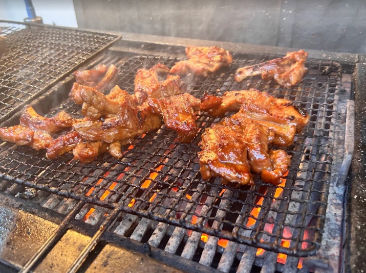 - 2차 (숯불): 숯불에 올려 약 5분간 직화로 구워 불맛을 입힙니다. 덕분에 느끼함은 없고 담백하고 고소함만 남죠!