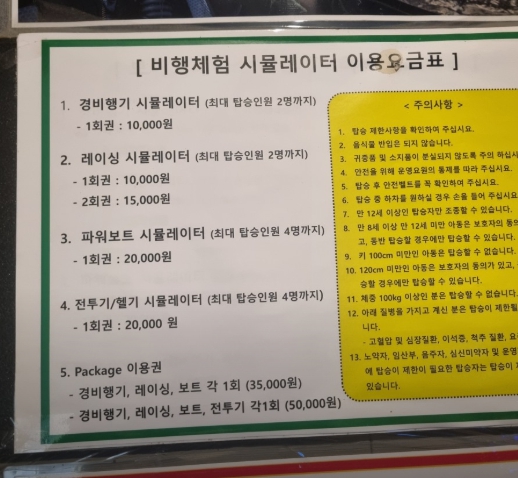 - 에너지 발산 코스: 활동량 넘치는 아이들에게 파일럿이라는 멋진 꿈을 심어주기에도 좋고, 일상의 스트레스를 날려버리고 싶은 어른들의 이색 데이트 코스로도 완벽합니다.
