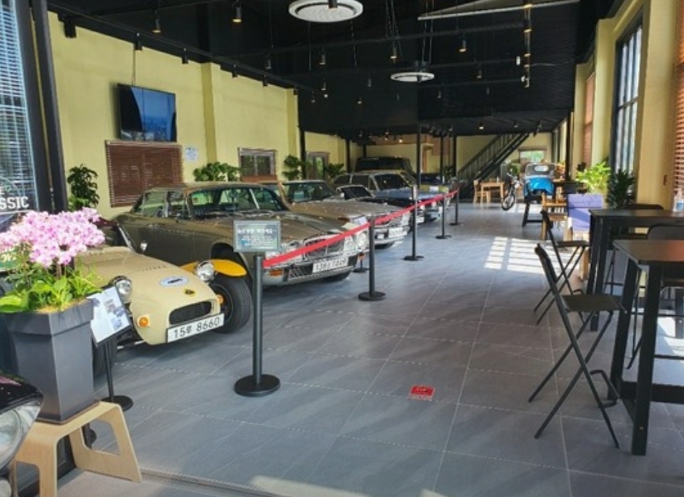 자동차를 사랑하는 분들이라면 무조건 장바구니에 담아두셔야 할 곳! 박물관을 방불케 하는 멋진 올드카들이 전시된 3층 규모의 대형 카페입니다.
