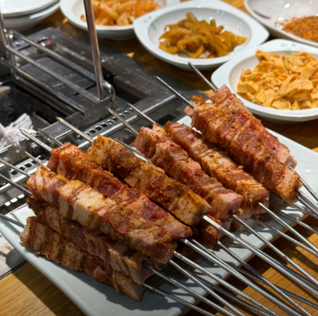 - 마라홀릭 & 치즈퐁당: 기본 양꼬치는 물론, 중독성 강한 '마라갈비꼬치'와 신메뉴 '치즈퐁당 양꼬치'까지! 다채로운 맛의 변주를 즐길 수 있습니다. 백종원 님이 극찬한 겉바속촉 꿔바로우도 필수 주문 메뉴입니다!