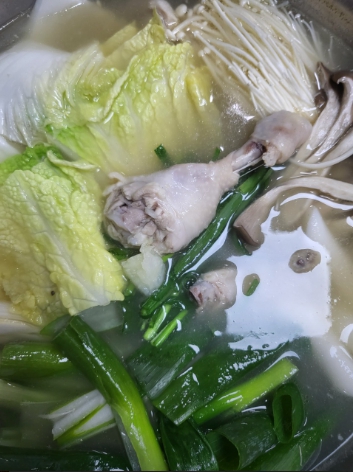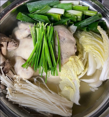 - 메뉴 소개: 신선한 닭 한 마리가 통째로 들어가며, 진하고 깊게 우려낸 육수에 부추, 감자 등 채소를 곁들여 끓여 먹는 보양 전골 메뉴입니다.